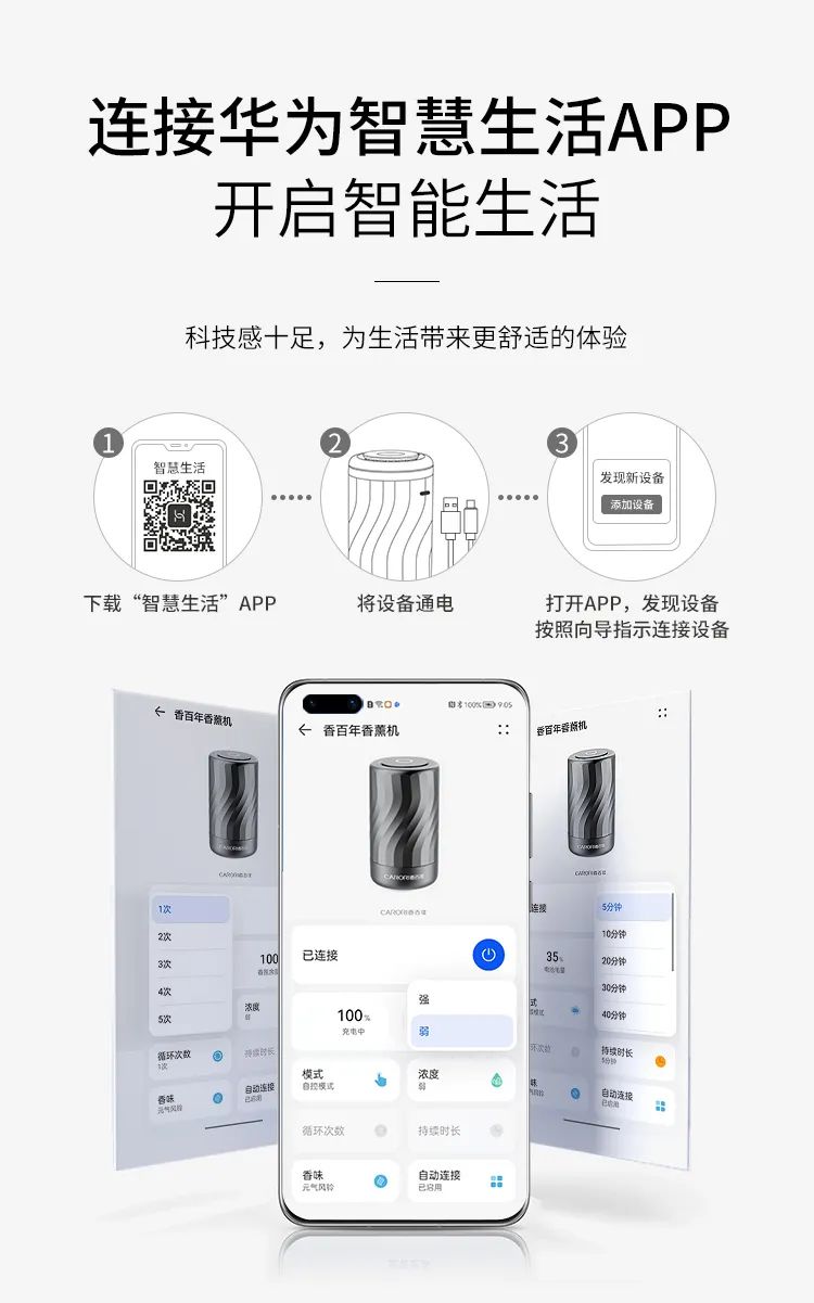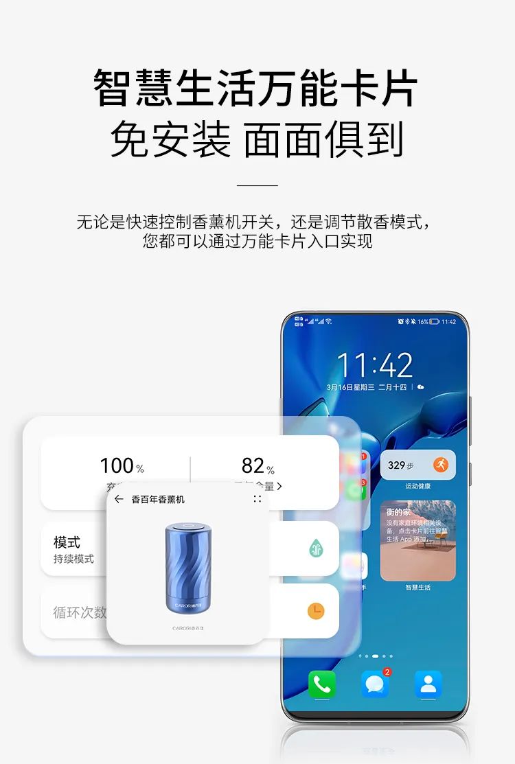 加入HarmonyOS Connect生態圈后,香百年智能香薰機將在協同辦公、智慧家庭等場景成為“超級終端”的一部分,通過極簡連接、萬能卡片、極簡交互等方式實現暢聯,給用戶帶來智聯萬物的智慧時代新體驗。